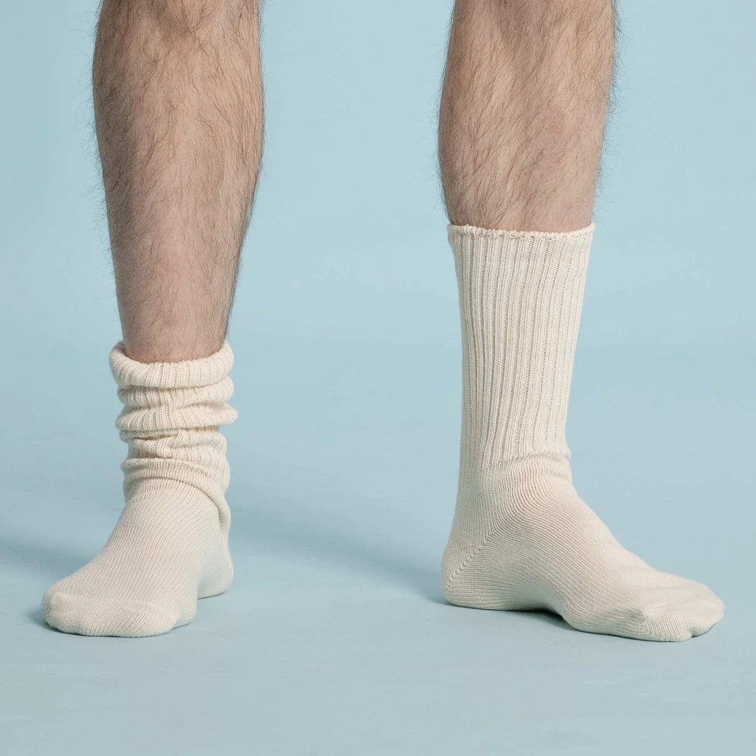 Our Organic Cotton Allergy Crew Socks are the answer when purity is of the essence. Made in USA. They are offered in four sizes for better fit, due to the lack of elastic in the body of the socks. They aren’t as hugging as “regular conventional socks” but for the many who suffer from multiple chemical sensitivities or for folks who dislike chemicals in general, that’s just a small price to pay for having really pure organic cotton socks. Our popular Allergy Crew Socks are a great choice if your goal is healthy, breathing, non-itchy & non-swollen feet. Never settle for less than what’s best for your health! Â